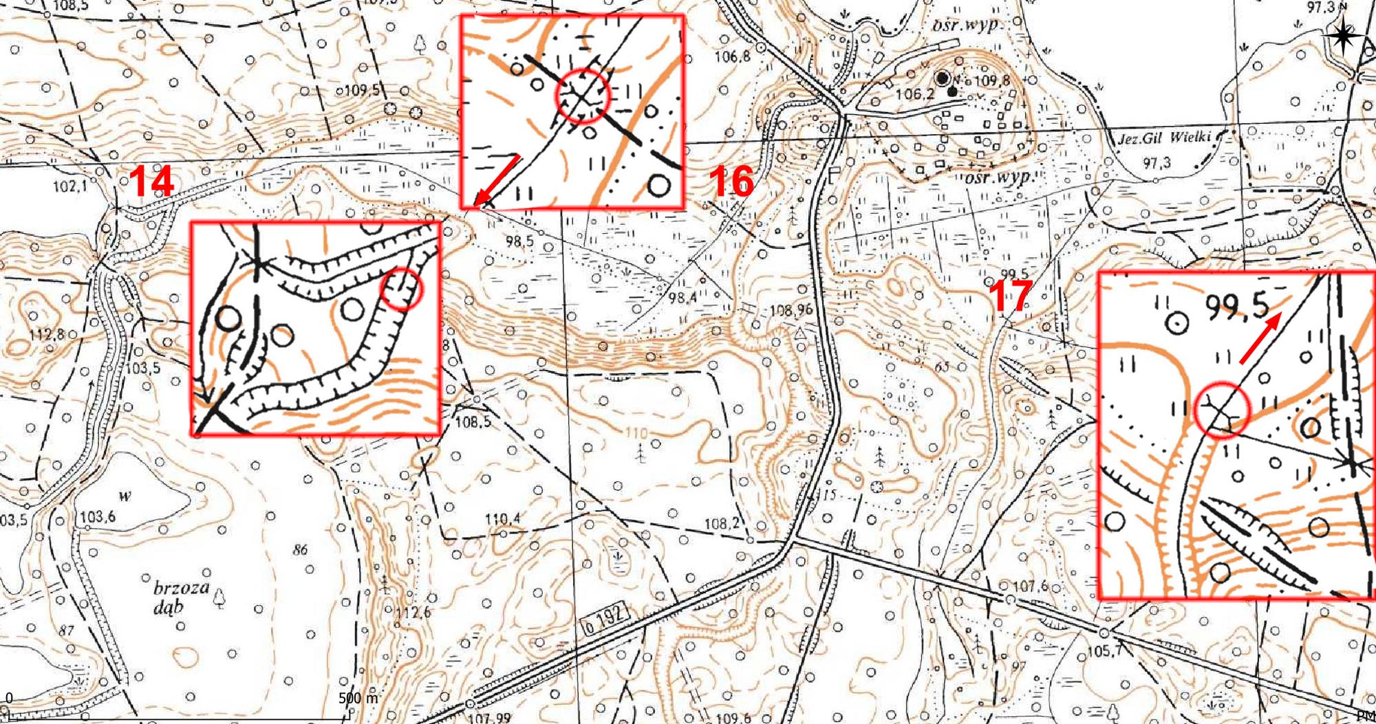 Rys.31. Zastawka (17) na współczesnaj mapie topo 10k. (geoportal.gov.pl). |