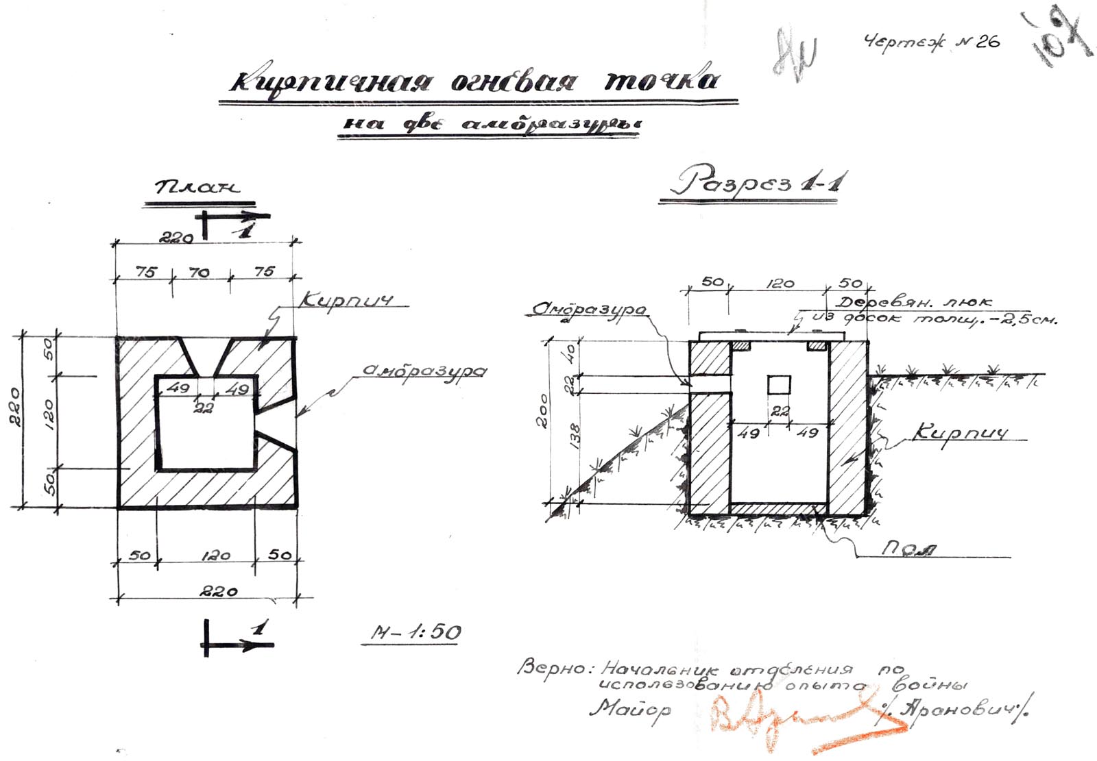 W skarpie nasypu kolejowego znajdowały się dwa kwadratowe, murowane punkty oporu z dwoma strzelnicami każdy. Punkty posiadały na szczycie drewniane włazy. Grubość ceglanych ścian wynosiła 50 cm. /patrz rys. 26/.
